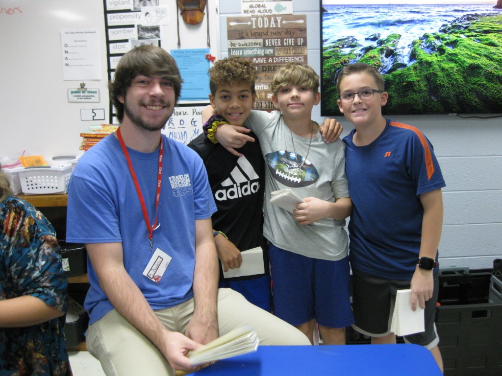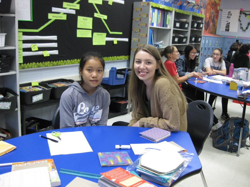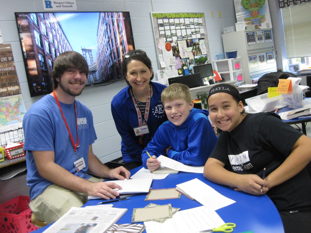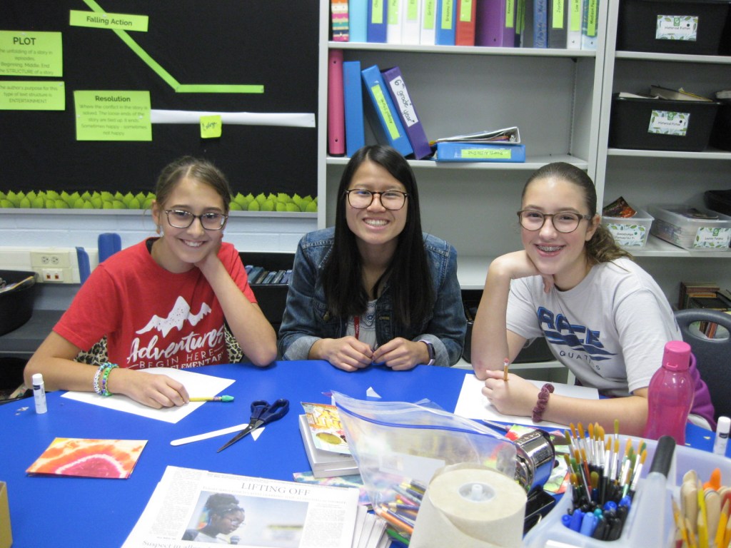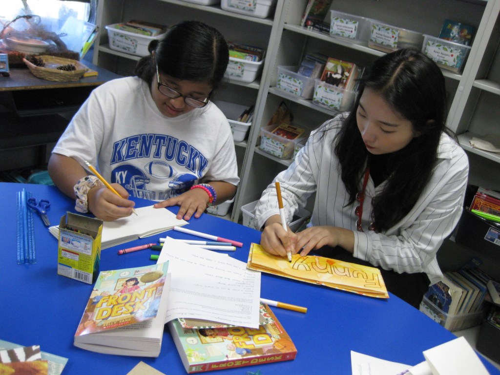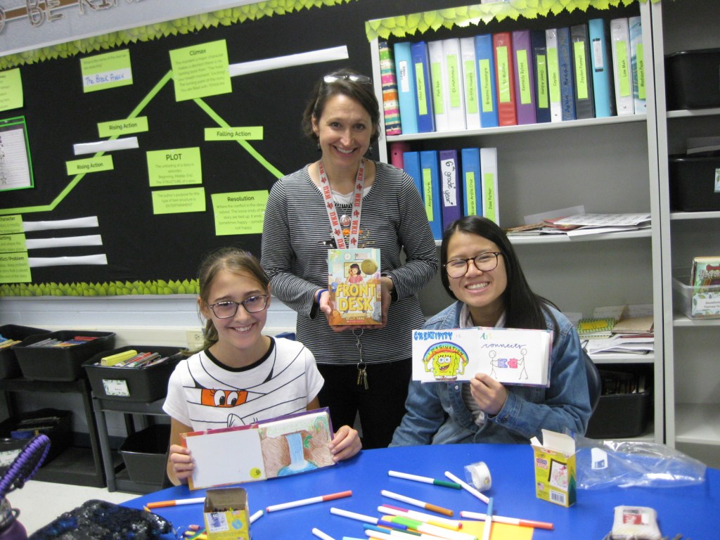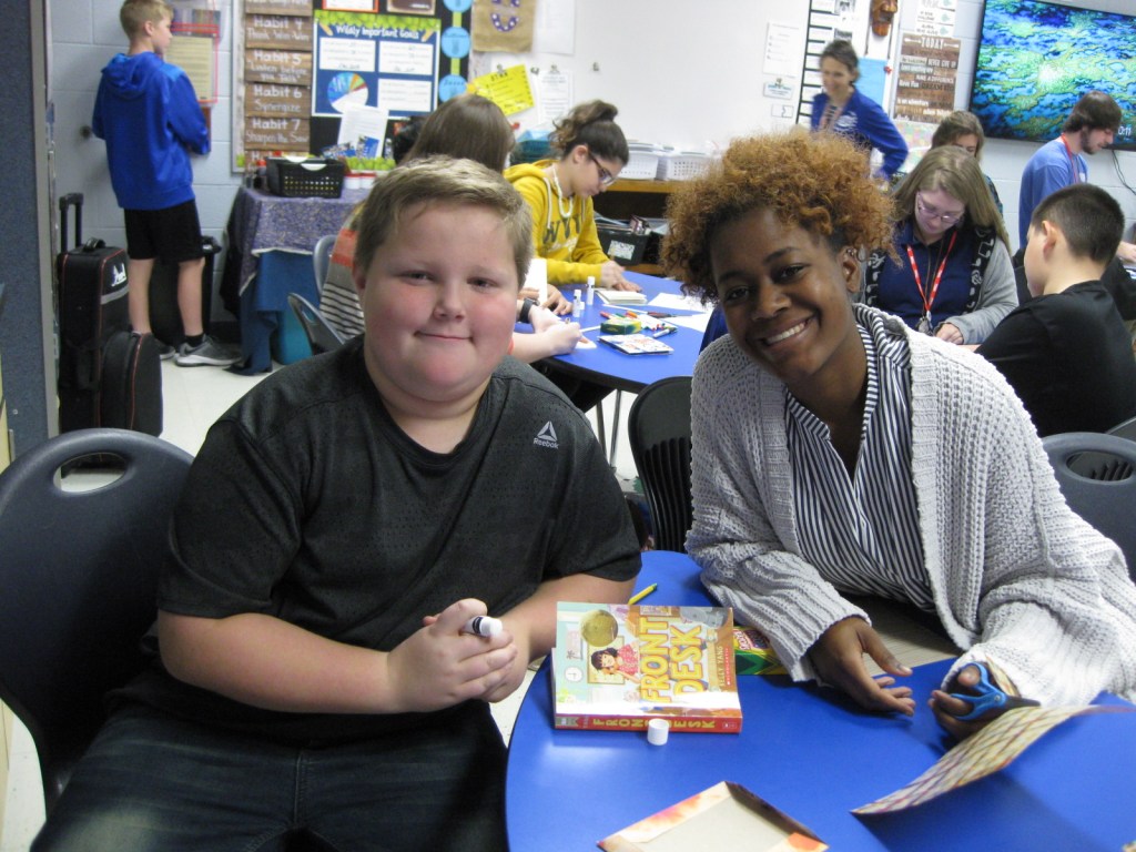 WKU Art Education students helping out at Alvaton Elementary. They were tasked with small groups of students in Mrs. O’nan’s class, and created a “Meandering Book” that went along with the book that the class was currently reading, “The Front Desk” by Kelly Yang.